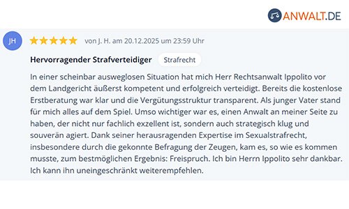 Rechtsanwalt Yannic Ippolito verteidigt Mandanten in komplexen Strafverfahren – mit besonderem Fokus auf Sexualstrafrecht, Aussage-gegen-Aussage-Konstellationen, Verfahren nach § 184b StGB und haftnahen Situationen.